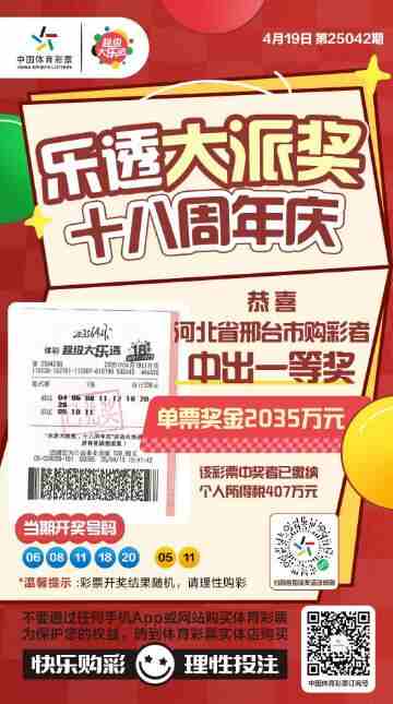 4月19日晚,超级大乐透第25042期开奖,恰逢8.8亿大派奖活动第5期。当期全国共开出2注一等奖,其中一注花落河北邢台,由几位彩民合买斩获,奖金高达2035万元。4月21日上午,这些幸运的购彩者现身河北省体育彩票中心,办理兑奖手续,并推选代表露脸拍照留念。