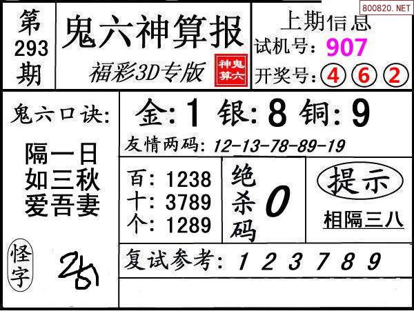 上一篇:24292期: 福彩3D鬼六神算图