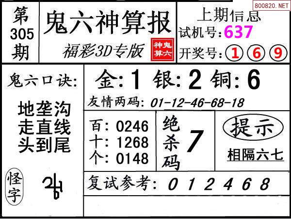 下一篇:24306期: 福彩3D鬼六神算图