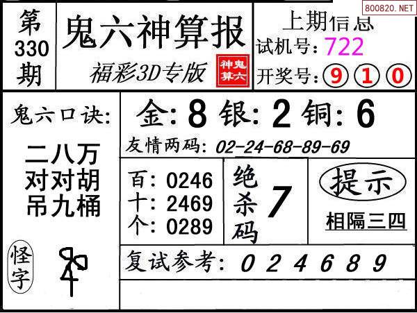 下一篇:24331期: 福彩3D鬼六神算图