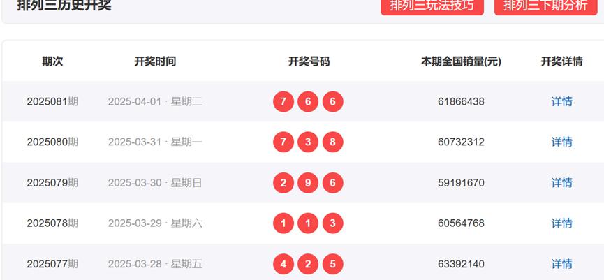 5、综上所述排列3-第25082期定位推荐信息如下: