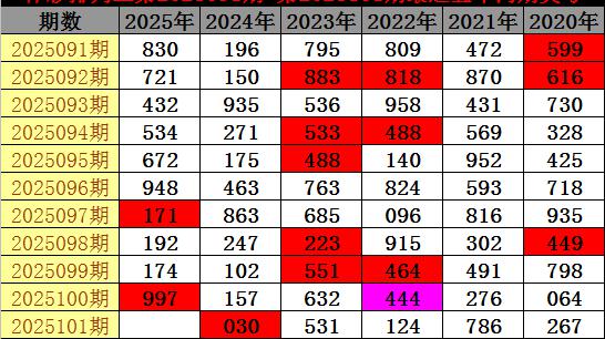 百位上期开出号码9,为奇数,偶数号最近出现次数较少,目前连续轮空5期,表现较冷,本期防止解冻,参考8。