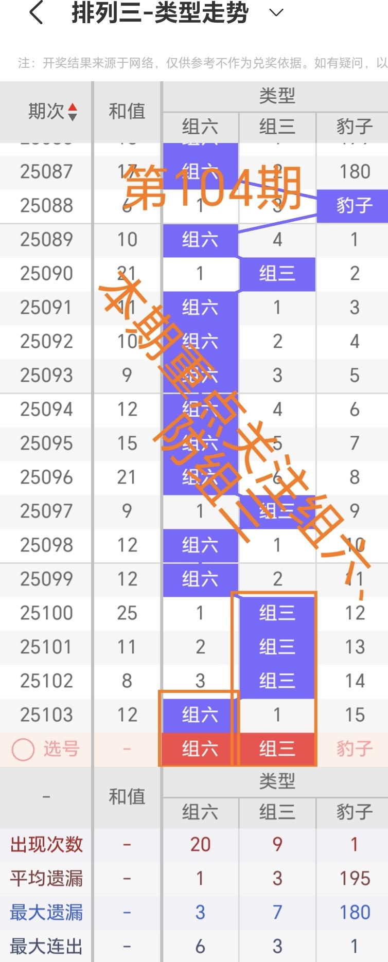 >从近三十期的走势来看,形态组六出现了20次,平均遗漏次数为1;形态组三出现了9次,平均遗漏次数是3次;形态豹子出现了1次,平均遗漏次数为195次,上期开出的形态是组六。本期重点关注组六形态,其次防备组三形态