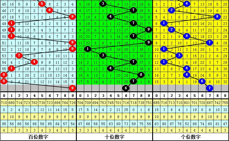 百位:大号近期出现较少,目前连续遗漏了5期,本期适当关注该位大号回补;另外,该位0路和1路号码在最近16期奖号中走势较热,2路号码表现相对较冷,本期该位放弃2路号码,参考号码9。