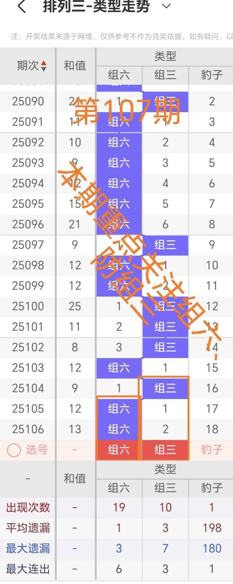 >从近三十期的走势来看,形态组六出现了19次,平均遗漏次数为1;形态组三出现了10次,平均遗漏次数是3次;形态豹子出现了1次,平均遗漏次数为198次,上期开出的形态是组六。本期重点关注组六形态,其次防备组三形态