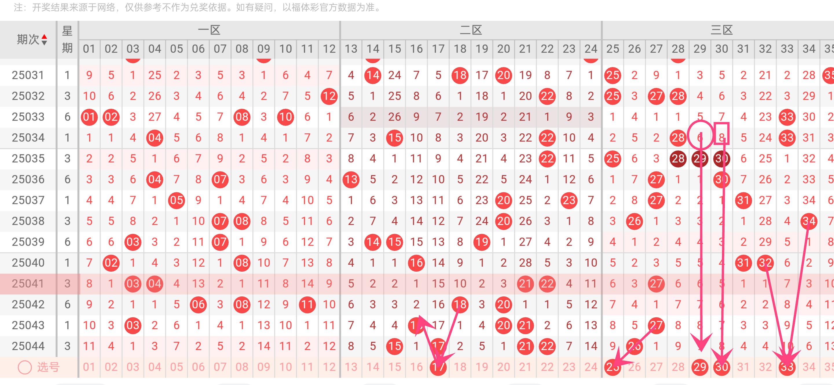 - 17(28次)、19(25次)、25(24次)、30(23次)、33(21次)(避开05、09、26、07、11等已频繁使用号)。