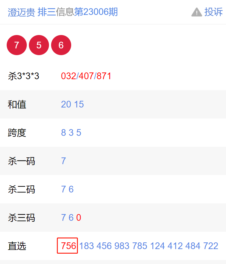 排列三上期开奖号码:756【更多体育彩票开奖链接:https://www.weicainet.cn/】