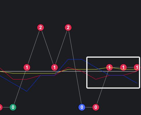 可以看到一些规律,但白框中实际上表现了两种可能:一种是接下来会出一期,一种是接下来几期都不出。
