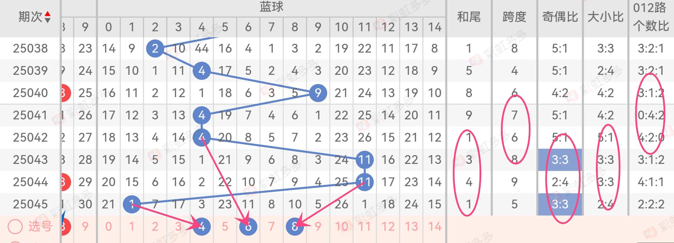 > 冷号聚焦:前区第一位“7”近30期仅出现1次,第四位“1”近10期未现身,后区特别号“2、3、4”近10期出现次数均≤2次,这些冷号在2025046期可能迎来表现机会。