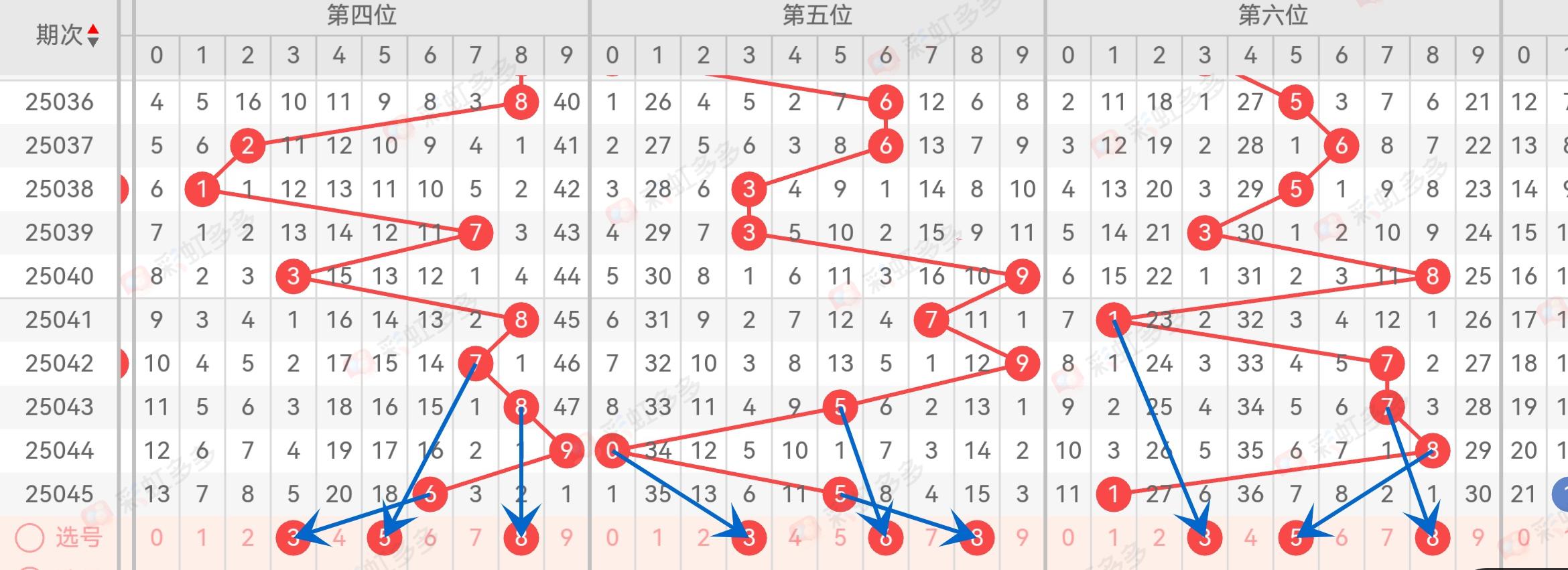 > 热号留存:第二位“3、4”近10期各出现3次,第五位“5、6”周期性活跃,是热号中的重点关注对象。