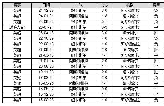 阿斯顿维拉 VS 纽卡斯尔两队近10年的交战次数为17场,阿斯顿维拉4胜6平7负,赢球概率为23.5%,平局概率为35.3%,输球概率为41.2%。