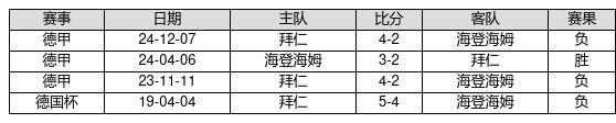 海登海姆 VS 拜仁两队近10年的交战次数为4场,海登海姆1胜0平3负,赢球概率为25.0%,平局概率为0.0%,输球概率为75.0%。