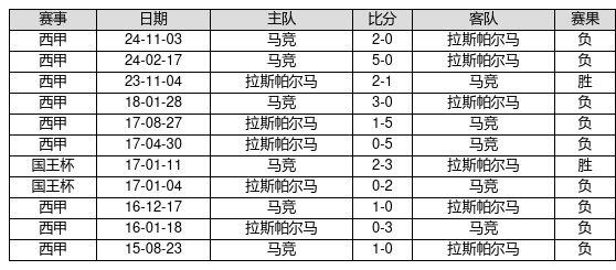 拉斯帕尔马 VS 马竞两队近10年的交战次数为11场,拉斯帕尔马2胜0平9负,赢球概率为18.2%,平局概率为0.0%,输球概率为81.8%。