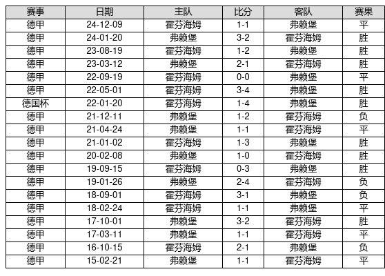 弗赖堡 VS 霍芬海姆两队近10年的交战次数为19场,弗赖堡9胜6平4负,赢球概率为47.4%,平局概率为31.6%,输球概率为21.1%。