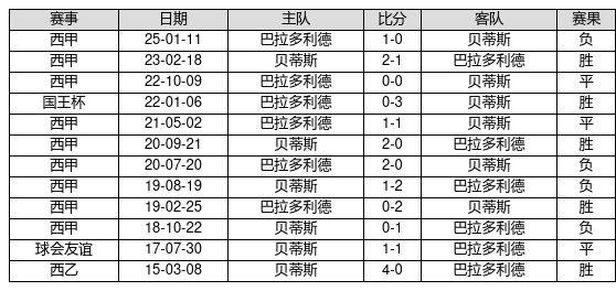 贝蒂斯 VS 巴拉多利德两队近10年的交战次数为12场,贝蒂斯5胜3平4负,赢球概率为41.7%,平局概率为25.0%,输球概率为33.3%。
