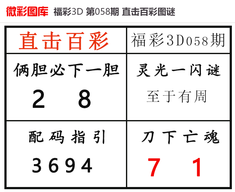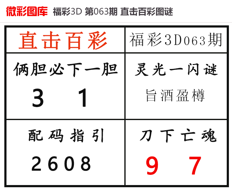 25064期:福彩3D【直击百彩】微彩图谜 配码9连红 上期杀码准