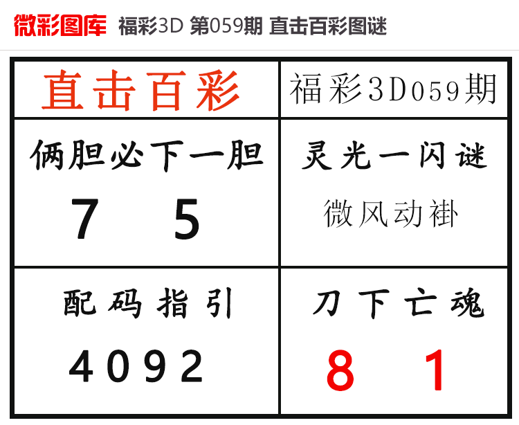 25062期:福彩3D【直击百彩】微彩图谜 开810 配码红8、1、杀码准