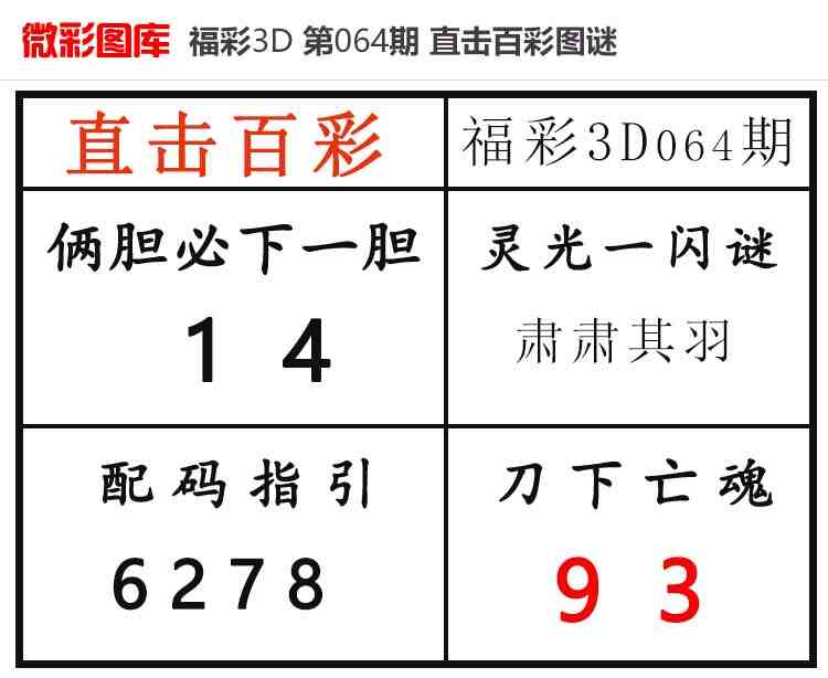 25069期:福彩3D【直击百彩】微彩图谜 配码近10中9上期杀码准