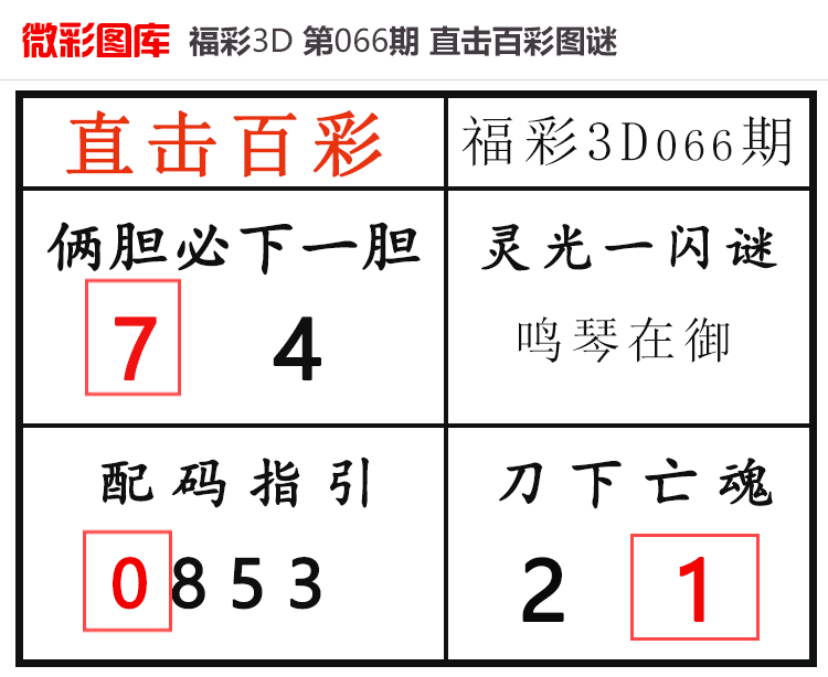 25066期:福彩3D【直击百彩】微彩图谜 开720 胆码红7、配码红0