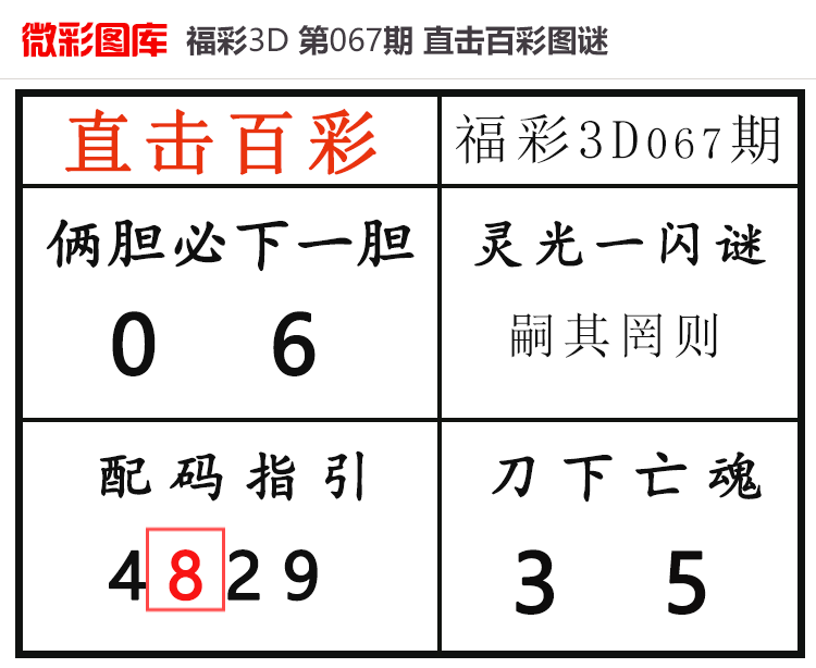 25067期:福彩3D【直击百彩】微彩图谜 开385 配码红8