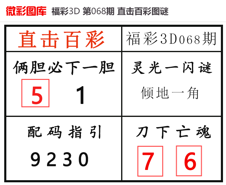 25068期:福彩3D【直击百彩】微彩图谜 开555 胆码红5、杀码准
