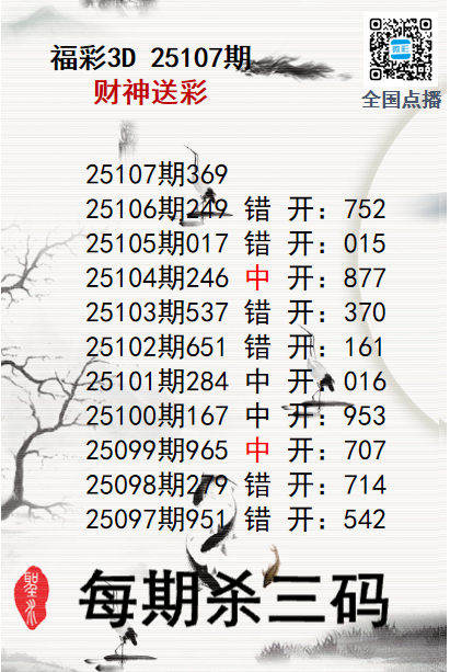 上一篇:福彩3D25107期分析师小鲨鱼杀号图精选