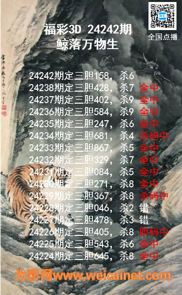 上一篇:福彩3D24242期龙虎斗胆码 杀码图