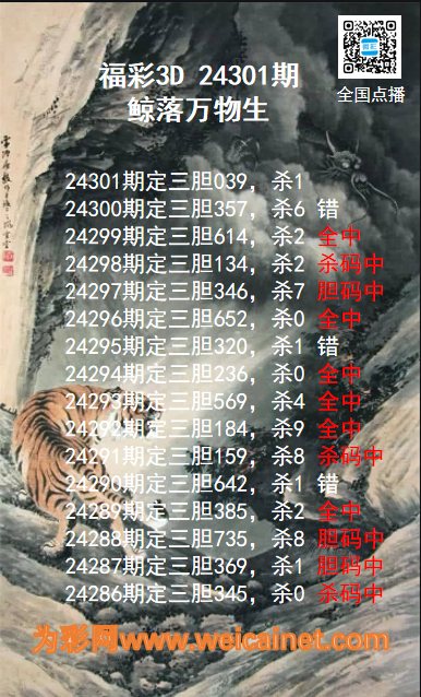 上一篇:福彩3D24301期龙虎斗胆码 杀码图