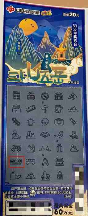 男子刮中福彩三山五岳头奖60万 直呼不敢相信