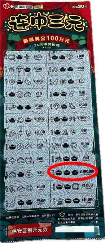 其中“刮刮乐”即开票因其即开即开、玩法多样、趣味性强而广受广大彩民的喜爱。“连中三元”是一张深绿色的刮奖券,它的面值很大,但也有一种精致而流畅的感觉。这里所说的“连中三元”,虽然和当年的“连中三元”、会元、会元等几种科考方式的区别,但对买彩票的人来说,也是一种不错的选择。在同一轮中抽到3个元宝图案,就有机会赢取30元的大奖,最高可中一百万。这样既轻松又好玩的方式,又能让广大彩民充分体验到彩票的乐趣和快感!