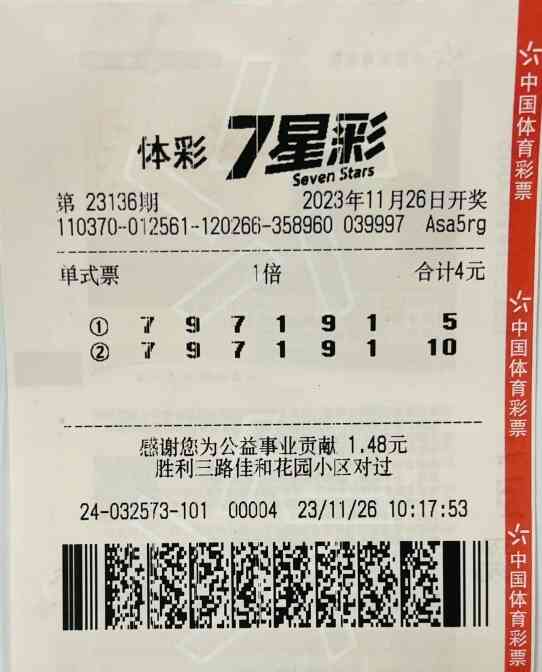 11月26日,7星彩第23136期开奖,开奖号码为7 9 7 1 9 1 + 5,滨州购彩者喜中当期1注500万元一等奖。中奖的消息一出,整个社交媒体都炸开了锅,所有人都在猜测,到底是谁这么幸运,中了这么大的奖。