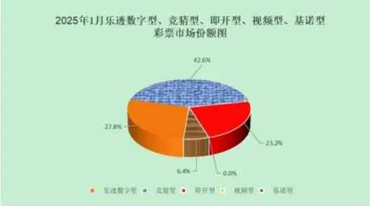 1月份,乐透数字型、竞猜型、即开型、基诺型彩票销售量分别占彩票销售总量的27.8%、42.6%、23.2%、6.4%,视频型彩票销售0.0016亿元,同比增加0.0005亿元。