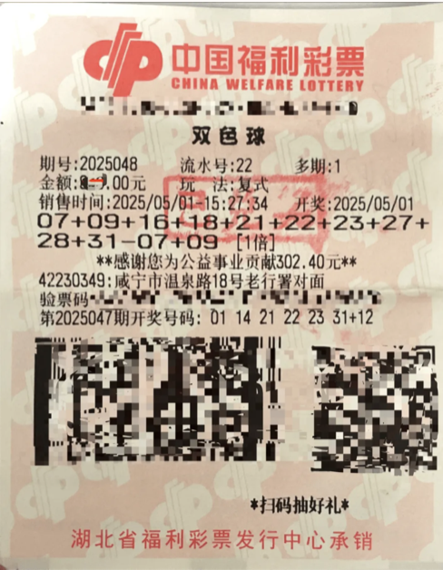5月1日晚,福彩双色球第2025048期开奖结果揭晓,湖北省彩市传来喜讯,一举中得两注单注奖金高达37.6万元的二等奖。令人惊喜的是,这两注幸运大奖被咸宁的一位购彩者石先生(化姓)独揽,总奖金达76万多元。