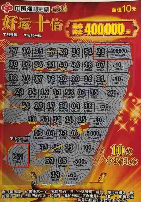 以红、黄为主色调的福彩即开票“好运十倍”,采用了经典的对数字玩法。不过,它和传统对数字玩法有所不同,采用了“一对多”的游戏方式。这种玩法简单好记,购彩者只需将刮开区所刮出的号码与中奖号码进行比对,若号码一致即可中奖。而且,“一对多”的设计让购彩者有多次中奖机会,大大增加了游戏的趣味性,让购彩者在刮奖过程中充满期待。