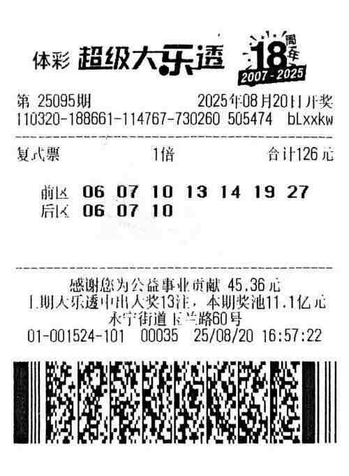 据了解,高先生的中奖彩票是一张7+3的复式票,于8月20日在南京3201001524体彩网点购买。在当期大乐透开奖中,这张复式票表现出色,不仅中得1注基本投注一等奖,奖金高达8079377元,还同时收获了2注二等奖、10注四等奖、20注五等奖、10注六等奖以及20注八等奖,单票累计奖金共计8227335元。