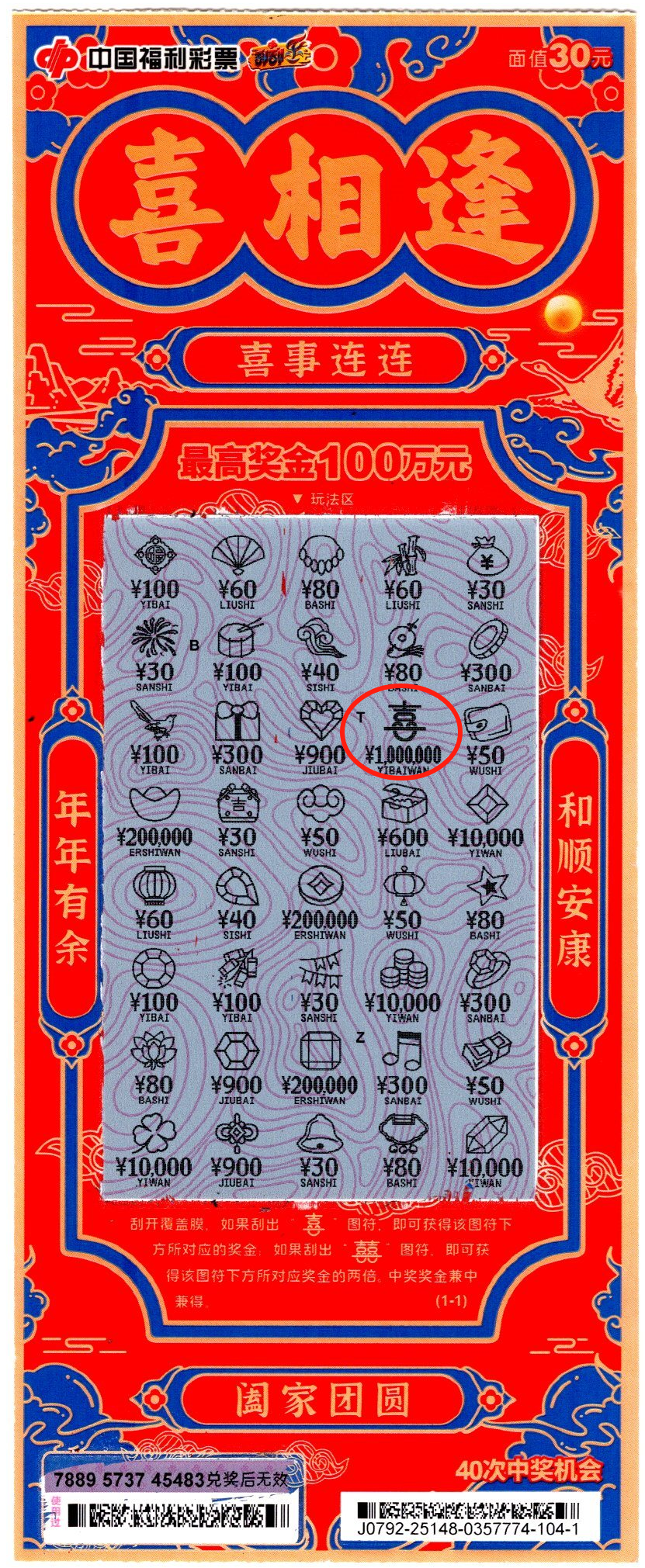 钦州彩民叶先生喜中福彩刮刮乐百万大奖