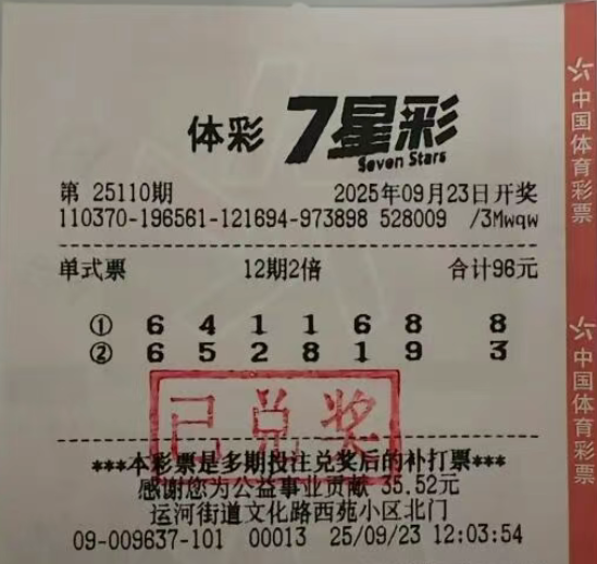 近日,体彩7星彩第25110期完成开奖,枣庄的购彩者孟先生凭借两注自己精心挑选的号码,幸运地将两注二等奖收入囊中,奖金共计107440元,且已顺利完成兑奖。