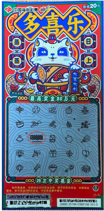 中山彩民喜中“多喜乐”刮刮乐即开票一等奖80万元