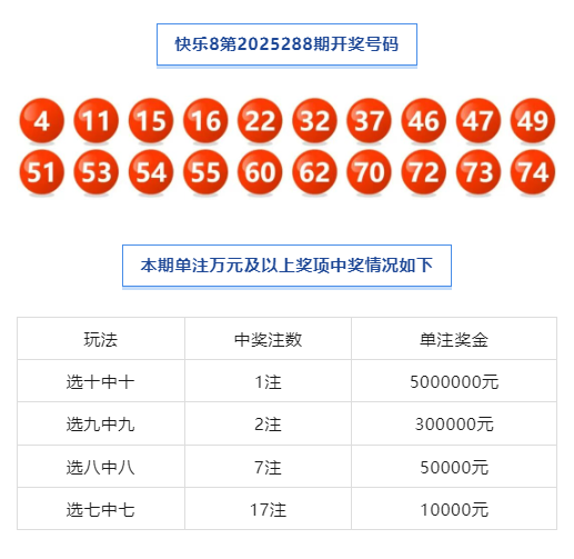 快乐8中出“选十中十”一等奖,奖金500万