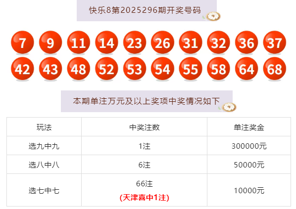 快乐8开出“选九中九”大奖 1注30万元 天津购彩者喜中“选