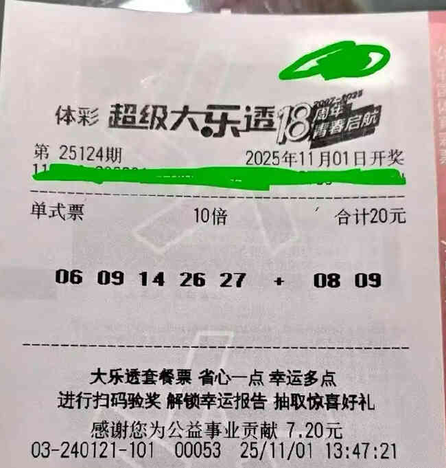 北京时间2025年11月1日,大乐透第25124期开奖,18注一等奖惊艳亮相,单注奖金达658万元。其中10注花落河南洛阳栾川第4103240121号投注站,近日中奖者已前往体彩中心兑奖,中奖彩票是一张20元10倍投单式票,一举斩获6587万巨奖。