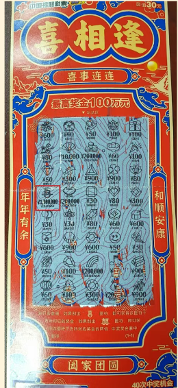 据了解,这次中奖的“喜相逢”30元即开票,因其简单直接的游戏规则和高额奖金,一直以来都深受彩民喜爱。幸运的彩民通过刮刮乐的一刮,收获了人生中的大礼,奖金高达100万元,这无疑是他们生活中的一次惊喜。