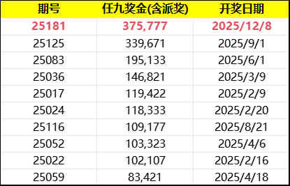 2025任九开奖TOP10(截止25.12.8)