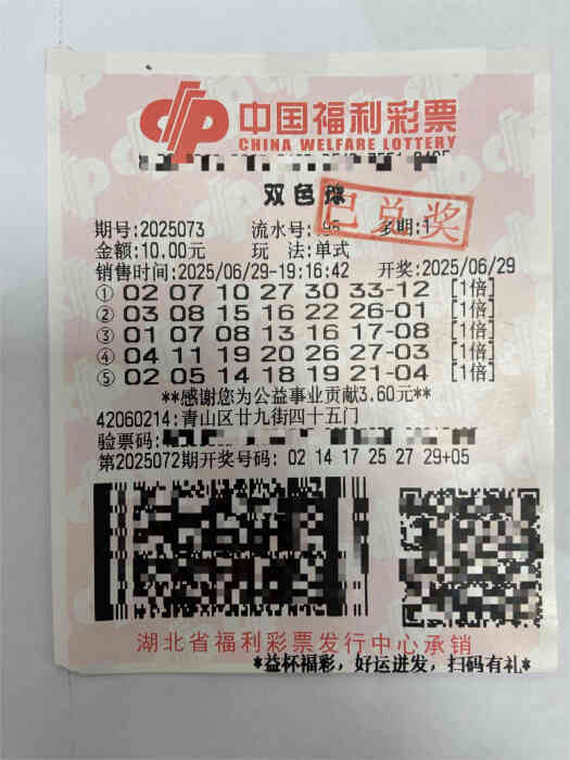 “我的运气简直爆棚啦!双色球第2025073期开奖,全省唯一一注二等奖被我拿下,而且我用的还是最简单的机选方法!”7月2日上午,武汉青山购彩者小余(化姓)在湖北福彩武汉江南管理站领奖时,兴奋地分享着自己的购彩故事。