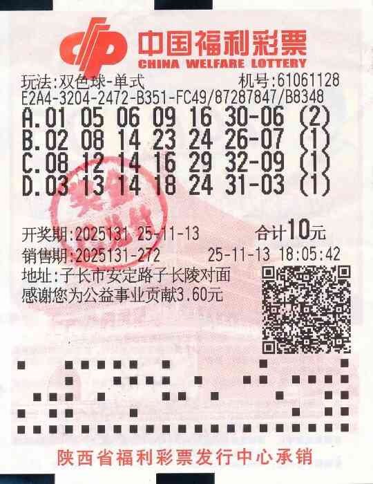 就是这个平常的举动,为刘先生锁定了好运。当晚双色球第2025131期开奖,一等奖开出8注,单注奖金783万元,延安喜中一注。这张18点05分在子长市安定路子长陵对面福彩投注站售出的彩票,机选最后一注号码,竟与当期全部开奖号码完美匹配,刘先生就此收获巨额奖金。