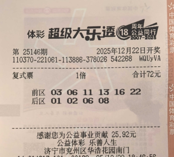 超级大乐透第25146期开奖,摇出的中奖号码为“06 11 13 16 22 + 02 03”。家住济宁市兖州区的购彩者吴先生(化姓),在这期开奖中幸运地收获了当期的二等奖,而且一下子中了3注!