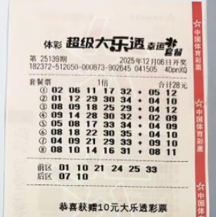 趁着闲暇时光奔赴枣庄游玩,竟意外收获一份天降鸿运!近日,来自徐州的李先生(化姓)在枣庄游玩时,随手买下一张28元的体彩超级大乐透套餐票,竟幸运斩获第25139期二等奖1注、九等奖1注,总奖金高达276304元,这份惊喜让他的枣庄之行更加难忘。