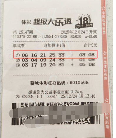 “看到开奖号码时,发现自己中了二等奖(追加),特别激动!幸好一直坚持追加投注,这1元钱的投入真的让奖金提高了不少。”中奖者难掩喜悦之情。