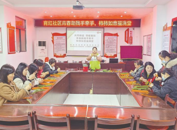 襄阳市民政局组织助残活动,带残疾人做手工。
