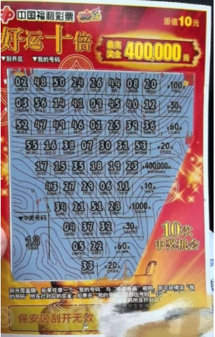 据悉,该奖出自仪征市解放东路宝能环球汇负一层的32100599号福彩投注站。中奖者是福彩的忠实粉丝,平常闲暇时总爱到投注站买上几张刮刮乐,享受即开即兑的乐趣。中奖当天,他像往常一样到站点选购刮刮乐,随手挑了几张“好运十倍”,在刮开其中一张时,发现“我的号码”和“中奖号码”完美匹配,奖金栏赫然显示40万元。投注站业主得知站点中出大奖后十分开心,还有不少彩民闻讯后纷纷前来沾喜气。
